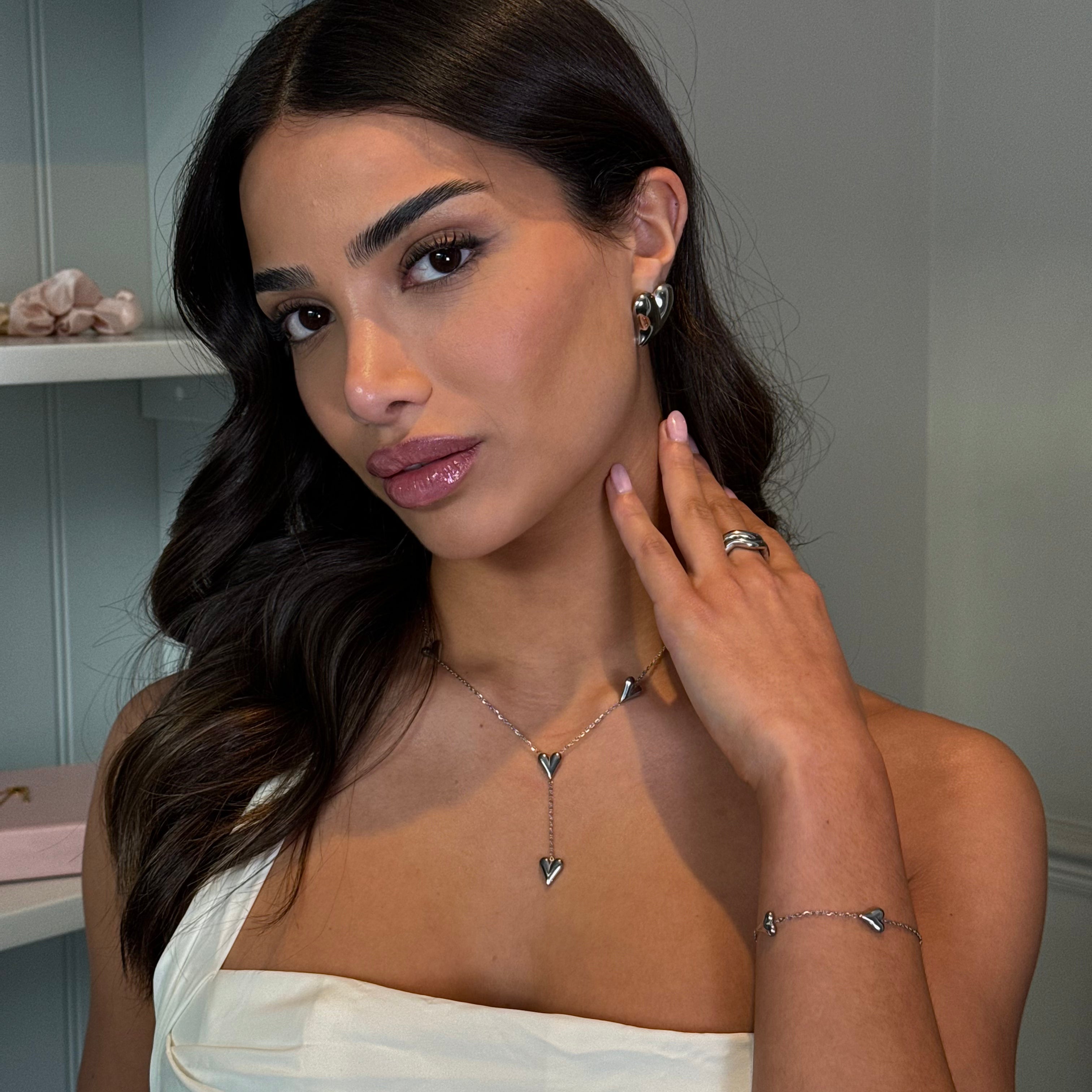 Pointy Heart Drop Necklace - Silver